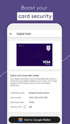 - Digital Card† - Boost your card security by using the dynamic CVV on your credit or debit card