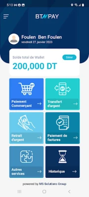 -La consultation de l’historique de vos transactions . -Le paiement d’un commerçant acceptant ce nouveau mode de paiement. -Le transfert d'argent -Le retrait d'argent -Le paiement des factures STEG et SONEDE.