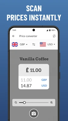 * Price converter. Instantly convert prices using your camera.