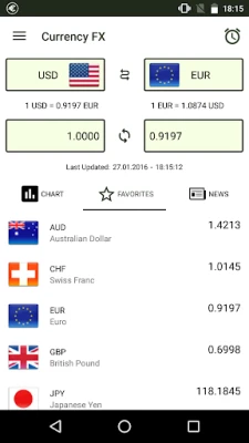 - Favorite Currency List to easily see all your favorited currency rates against your selected base currency