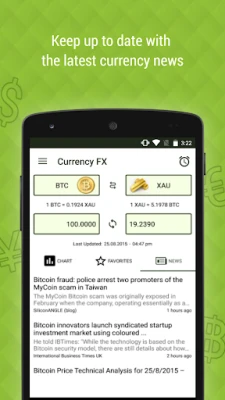 The intuitive UI of Currency FX shows you all the information you need in one single screen: