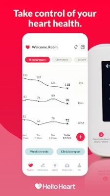 Our FDA-cleared monitor connects with your phone via Bluetooth so you can track and see your blood pressure and heart rate readings right in the Hello Heart app. Easily import your cholesterol test results from your clinic and sync your Apple Health data, too.
